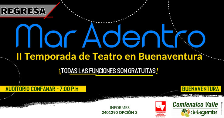 Todas las funciones se llevarán a cabo en el Auditorio COMFAMAR de la ciudad de Buenaventura a las 7:00 pm.