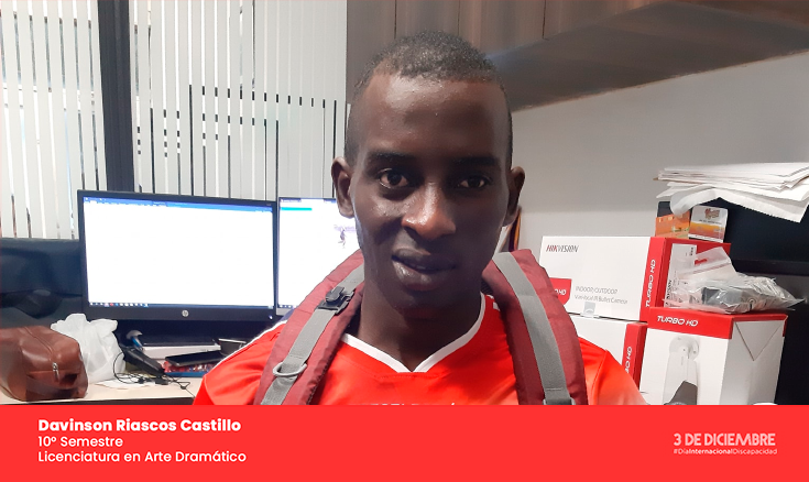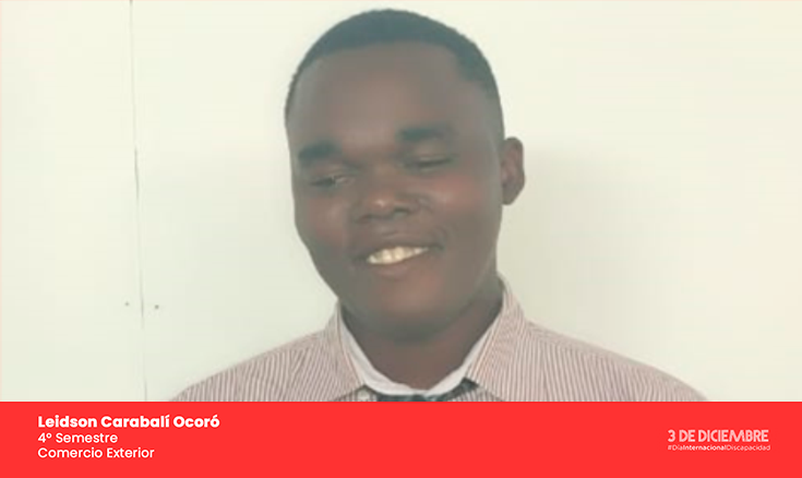 Leidson Carabalí Ocoró nación el 1 de diciembre de 1997. En el año 2020 ingreso a estudiar la carrera Comercio Exterior y actualmente se encuentra en cuarto semestre. Este joven, está inspirado en darle un mejor futuro a su familia y hacer la diferencia en este campo profesional, donde no hay muchas oportunidades, para personas con discapacidad. Se capacito en el instituto para niños ciegos y sordos donde aprendió a leer Braille y también que es la movilidad para personas ciegas.